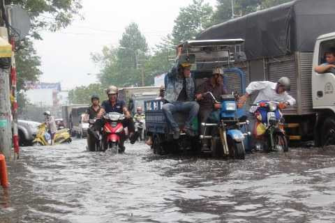 Tuy nhiên, cơn mưa ngập ở Sài Gòn chiều tối qua có vũ lượng lên đến 142 mm, triều cường 1,4m lại kéo dài nhiều giờ liền nên cống không thể thoát kịp gây ngập nước nặng.