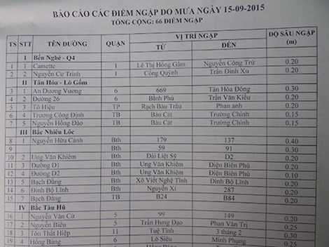 | Tổng cộng 66 điểm ngập do mưa ngày 15/9/2015 |