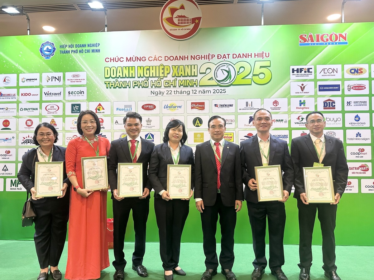 Ngày 22/12, tại Lễ tôn vinh “Giải thưởng Doanh nghiệp Xanh 2025” do UBND TP.HCM chủ trì, Hiệp hội Doanh nghiệp TP.HCM (HUBA) phối hợp với Báo Sài Gòn Giải Phóng tổ chức, Liên hiệp Hợp tác xã Thương mại TP.HCM (Saigon Co.op) cùng 21 đơn vị thành viên đã được vinh danh Doanh nghiệp Xanh TP.HCM năm 2025.