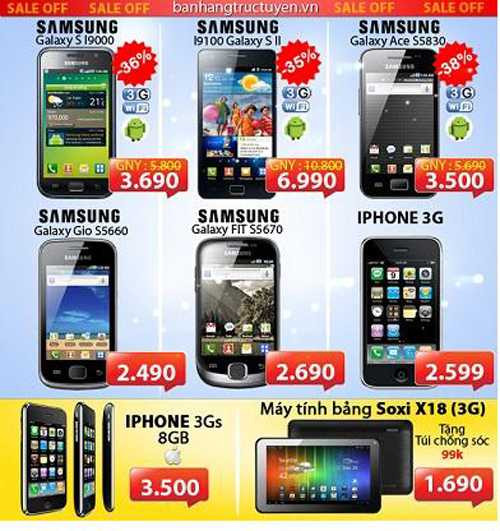 Tuần này các sản phẩm đang được giảm giá là những dòng sản phẩm SamSung Galaxy, iPhone 3G/3Gs với mức giảm lên tới 40%.