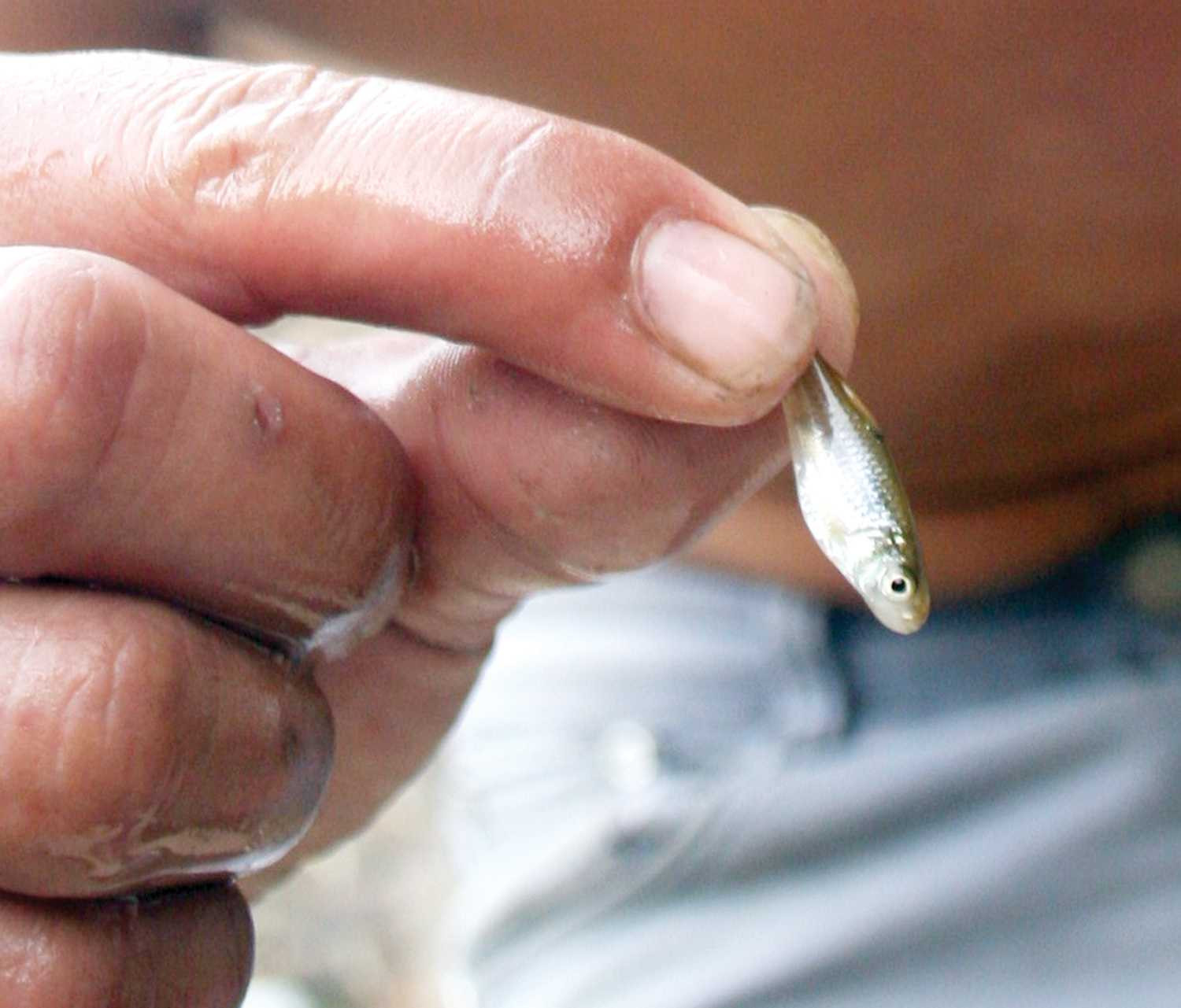 | Chỉ cần một chiếc vợt nhỏ và chai, lọ hoặc xô đựng những đứa trẻ con cũng có thể bắt được hàng trăm con cá trầm mỗi ngày. |