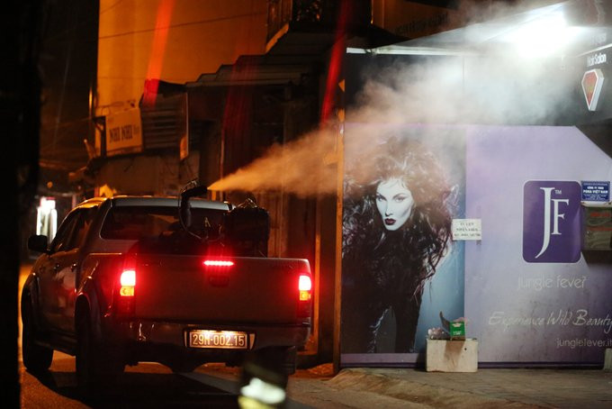 Quá trình phun thuốc bằng máy được phối hợp chặt chẽ bởi UBND phường, Trung tâm Y tế tự phòng Hà Nội, Phòng Y tế huyện, công an, dân phòng. Theo quy trình xử lý sốt xuất huyết, mỗi địa bàn được phun thuốc sau 7 ngày sẽ phun lại một lần. Mỗi đêm một máy phun công suất lớn diệt muỗi cho khoảng 2 phường tùy địa bàn.