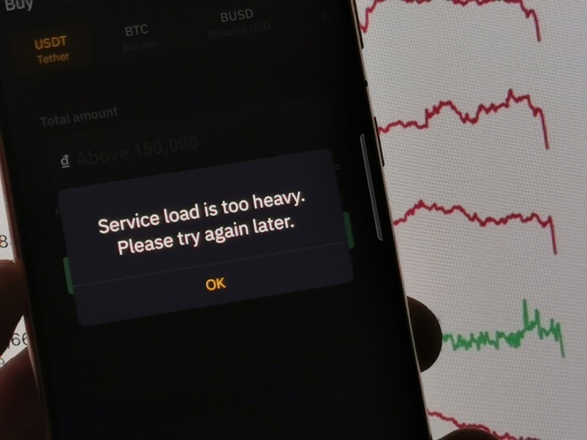 Theo ghi nhận của phóng viên, khoảng 20h30 ngày 19/5, người dùng vẫn có thể truy cập vào ứng dụng và website của Binance. Tuy vậy, khi thực hiện giao dịch, hệ thông liên tục gửi thông báo quá tải tới người dùng. Bên cạnh đó, người dùng cũng không thể nhận được email mã xác thực đăng nhập từ sàn Binance.
