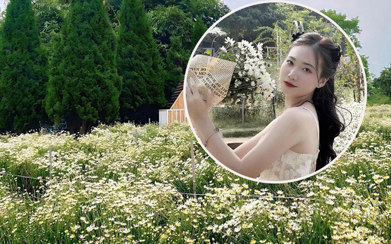 Phương Thảo rạng rỡ bên cúc họa mi đầu mùa. (Ảnh: Phương Thảo)