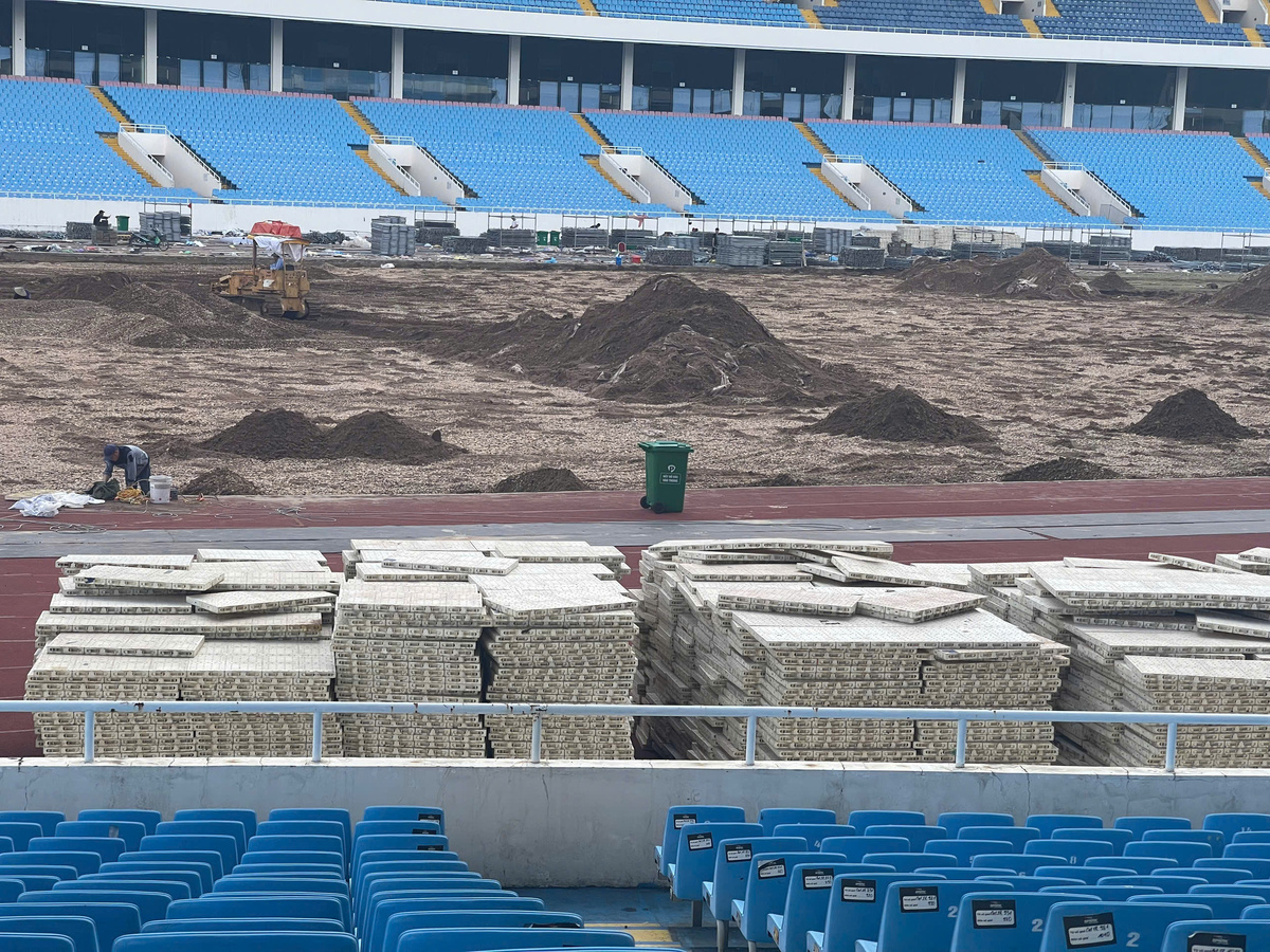 Đến trưa ngày 11/9, công nhân đang đào toàn bộ lớp cỏ cũ và máy ủi tiến hành san phẳng các lớp đất. Về cơ bản, đây chỉ là những bước đầu tiên trong kế hoạch cải tạo sân. Giai đoạn quan trọng nhất nằm ở hoạt động nâng cấp chất lượng nền, trồng và nuôi cấy cỏ. Đến khi mặt sân hoàn thành, việc sử dụng và bảo dưỡng sân lại đóng vai trò quyết định.