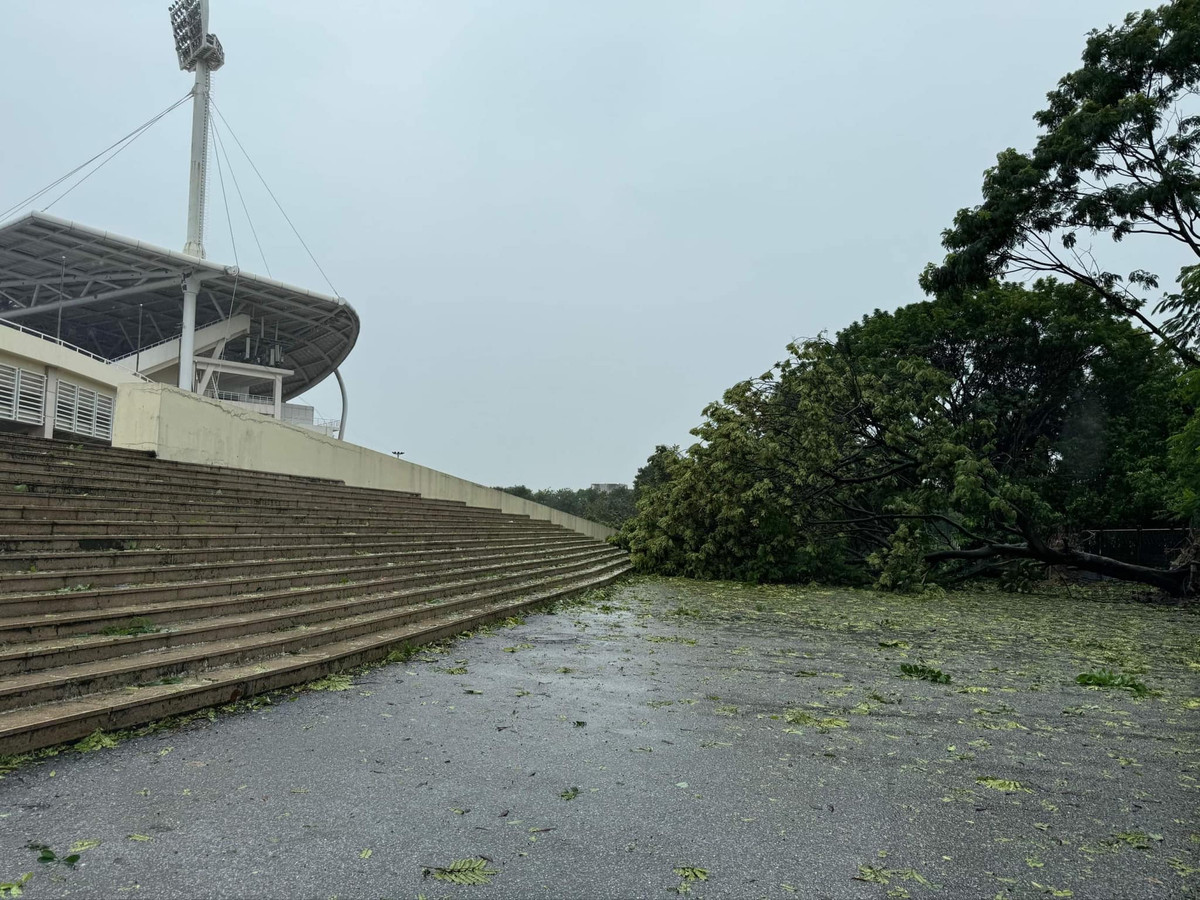 Ngày 7/9, bão Yagi chính thức đổ bộ vào đất liền và gây ra ảnh hưởng nặng nề. Như nhiều khu vực khác, sân Mỹ Đình chịu ảnh hưởng của bão.