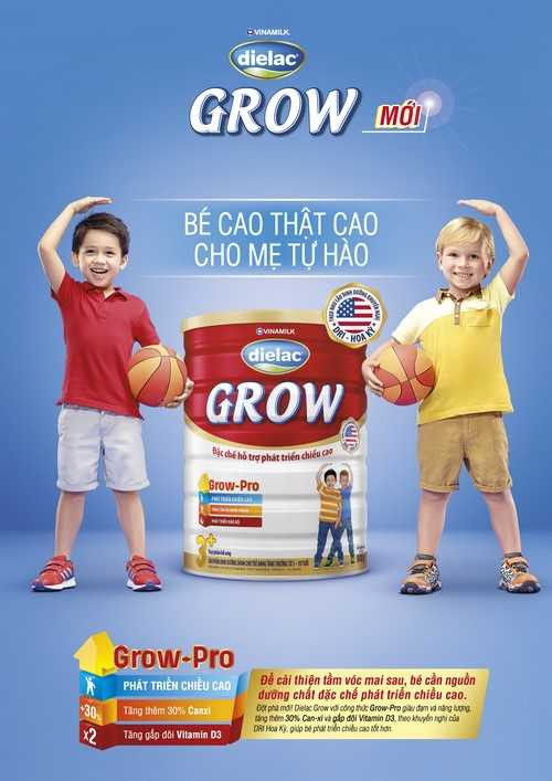 Điểm ưu việt của sản phẩm dinh dưỡng đặc chế hỗ trợ phát triển chiều cao Dielac Grow với công thức Grow-Pro là tăng thêm 30% hàm lượng canxi và gấp đôi hàm lượng vitamin D3* phù hợp với nhu cầu trẻ em trong độ tuổi phát triển chiều cao. Ngoài ra, công thức Grow-Pro còn bổ sung DHA, axít Linoleic, axít Alpha-linoleic giúp trẻ phát triển não bộ, MCT và chất xơ hòa tan FOS cùng hệ men vi sinh Bifidobacterium, BB-12TM và các dưỡng chất chống ôxy hóa như vitamin A, C, E, khoáng chất giúp trẻ tăng cân và khỏe mạnh.