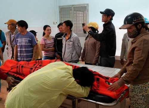 | Người thân gục khóc bên thi thể chị Huyền tại bệnh viện |