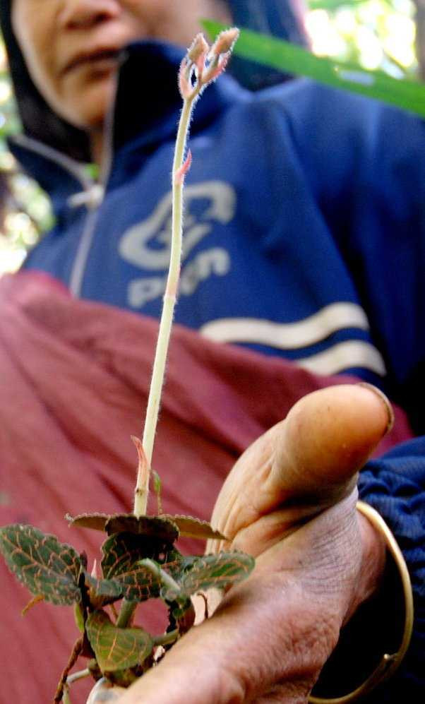 "Hai vợ chồng mình đi tìm cả ngày hôm nay đấy, lá kim cương khó tìm lắm, lâu lâu mới gặp" - A Quý, người Mơ Nâm ở làng Kon Plông, nói.