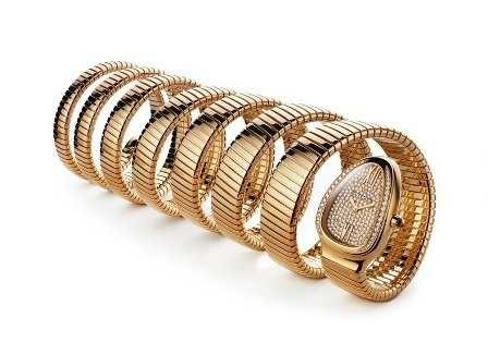 Chiếc đồng hô Bulgari Serpenti dành cho nữ uốn quanh cổ tay và mặt đồng hồ hình đầu rắn. Những chiếc đồng hồ Serpenti vẫn được làm từ những sợi bọc thép hoặc vàng, có độ đàn hồi để có thể cuốn quanh cổ tay, mặt đồng hồ một số chiếc được nạm kim cương, một số mẫu đặc biệt cao cấp được nạm đá quý, sẽ phải mở “miệng rắn” để xem đồng hồ