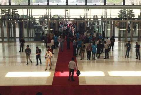 Lúc 8h30, khung cảnh tại khu vực sảnh kiểm tra an ninh: