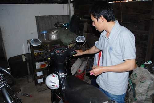 Cũng với thiết bị chống trộm này, anh Thanh đã nâng cấp đến mức độ tối ưu khi gắn cho xe máy. Thiết bị chống trộm dành cho xe máy được mã hóa 2 mức độ khác nhau. Mức độ một cho phép dắt xe đi nhưng không nổ được máy. Khi để xe ở bãi, bảo vệ có thể dắt xe để sắp xếp.