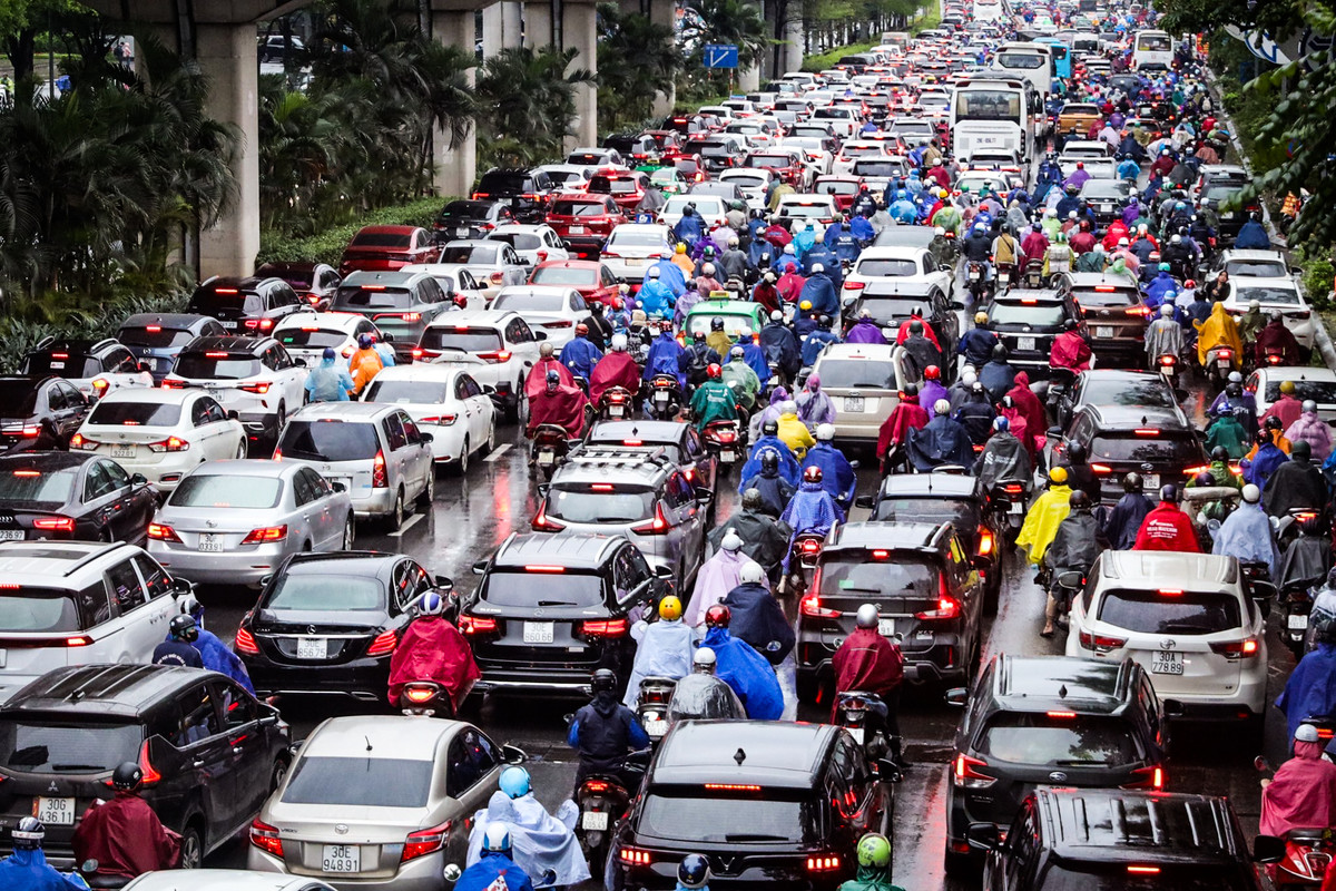 Xe cộ nhích từng chút một dưới cơn mưa nặng hạt.