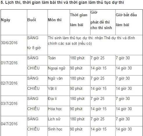 Tổng số điểm thi toàn quốc: 1.482. Tổng số phòng thi trên toàn quốc: 31.668. Kỳ thi THPT quốc gia năm 2016 chính thức diễn từ ngày 1- 4/7/2016.