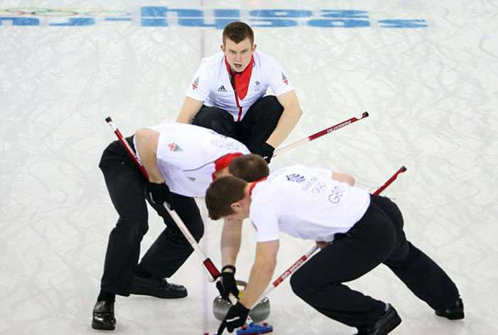 Hình ảnh môn bi đá trên băng trong khi thi đấu ở Olympic Sochi 2014