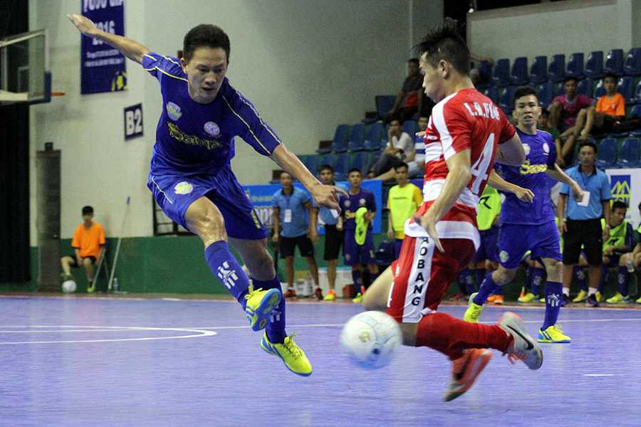 | Thái Sơn Nam (áo xanh) vẫn đang thẳng tiến vững chắc trong cuộc đua đến ngôi vô địch, giải futsal VĐQG 2016 (ảnh: Hoàng Tùng) |