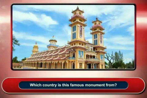 | Tòa thánh Cao Đài, tỉnh Tây Ninh được đưa vào nội dung câu hỏi |