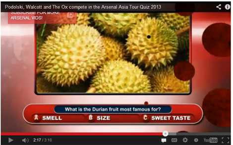 Trong clip trên, Podolski, Walcott và Chamberlain cùng lần lượt trả lời 10 câu hỏi được đưa ra. Ai trả lời nhanh nhất sẽ là người chiến thắng.