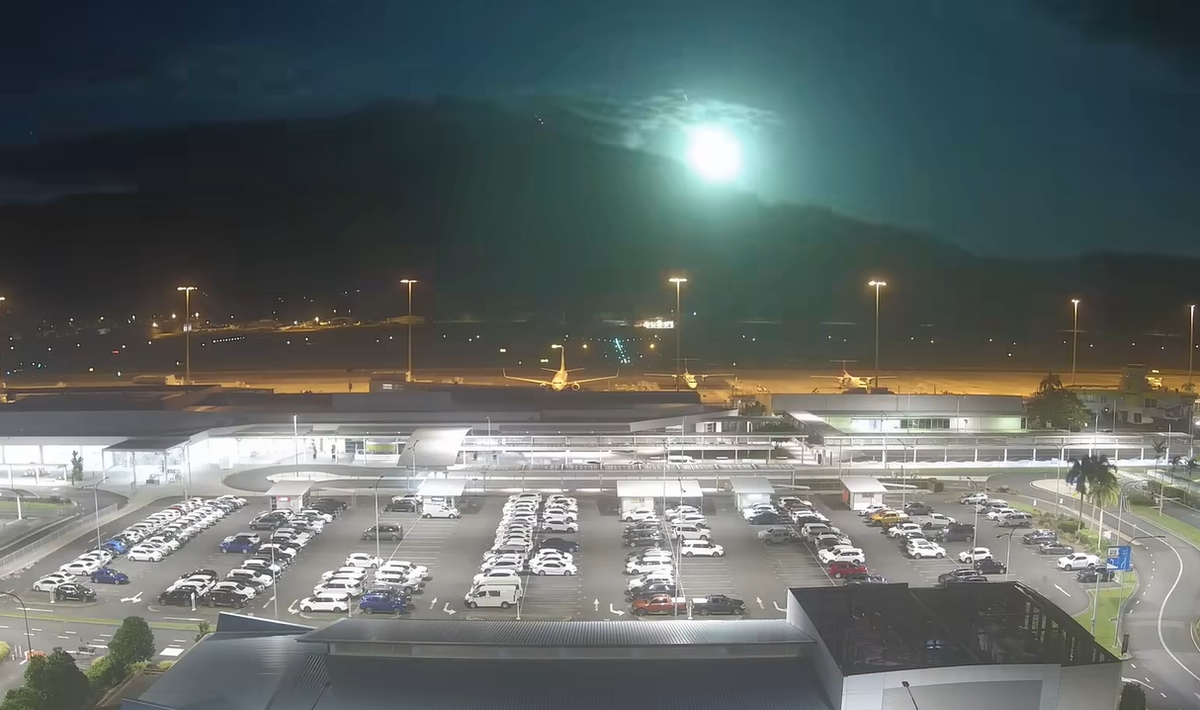 Theo Sputnik, máy quay an ninh tại sân bay quốc tế Cairns vô tình ghi lại cảnh ngôi sao băng có ánh sáng màu xanh rơi xuống thành phố Cairns thuộc bang Queensland vào tối 21/5.