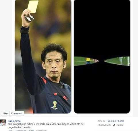 | Hình ảnh chế giễu trọng tài Nishimura được hậu vệ Srna đưa lên Facebook hôm qua. |
