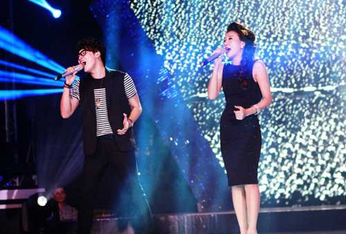 | Lê Vũ Bình và Ngô Thanh Huyền là cặp đôi ấn tượng nhất đêm hát đôi Sao Mai điểm hẹn 2014. |