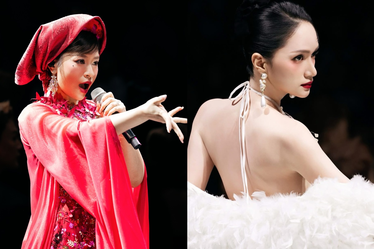 Nếu Thu Hằng mang đến vẻ đẹp hoài cổ và tinh thần dân gian, thì Hoa hậu Hương Giang lại khiến người xem không thể rời mắt khi đảm nhận vai trò vedette trong bộ trang phục trắng tinh khôi, khai thác tối đa lợi thế vóc dáng.