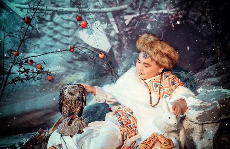 Con rất thích lối sống du mục của người Mông Cổ, đặc biệt là nghề truyền thống nuôi đại bàng đi săn của người Kzakh cũng như trang phục ấn tượng của người dân nơi đây. Nhân dịp Hà Nội rét ngọt, con quyết định thực hiện bộ ảnh trên cho hợp thời tiết. Và tình cờ bộ ảnh được hoàn thiện đúng dịp Valentine. Với con không chỉ Valentine mà 365 ngày đều là ngày mọi người nên yêu thương nhau”.
