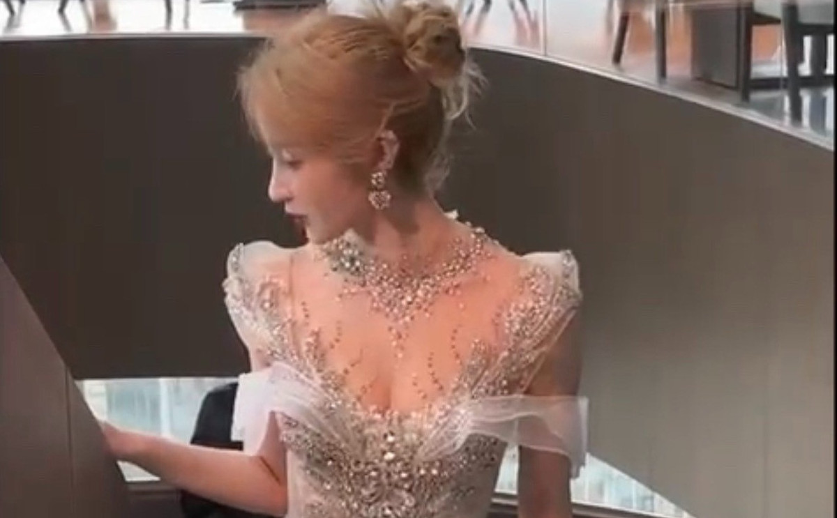 Trao đổi với chúng tôi, đại diện thương hiệu chia sẻ, thiết kế lần này dành cho cô dâu nổi tiếng, được theo dõi nhiều nhất trên douyin có giá lên tới 250 triệu đồng. Nó đặc biệt tôn vóc dáng thanh thoát của người mặc với điểm nhấn là phần đính kết ở cổ vai cùng hoạ tiết dọc thân váy.
