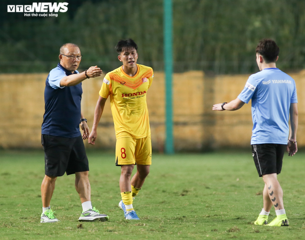 Bảo Toàn là cầu thủ duy nhất được HLV Park Hang Seo dặn riêng. Ông tập hợp đội khi tan trận, dặn dò, động viên cầu thủ vài câu trước khi nghỉ. (Ảnh: Hồng Nam)