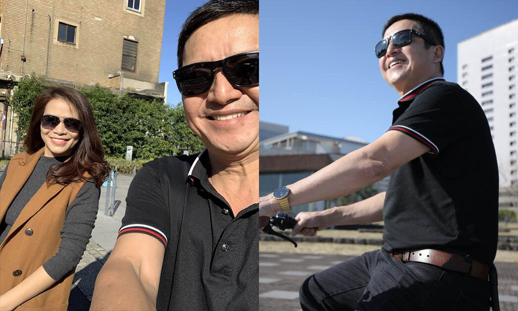 Trên trang cá nhân, NS Chí Trung chia sẻ hình ảnh chụp cùng bạn gái Ý Lan trong chuyến du lịch Nhật Bản. Cả hai tình tứ đi xe đạp trên đường phố. Nam nghệ sĩ hài hước viết: "Xăng có lên nghìn triệu một lít cũng kệ nhỉ em?".