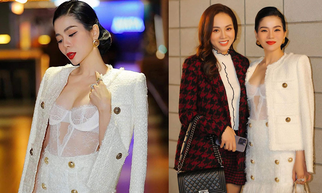 Bà xã Công Lý cũng chia sẻ loạt ảnh chụp cùng Lệ Quyên khi hội ngộ tại sự kiện. Cô bày tỏ sự ngưỡng mộ sự trẻ trung của nữ ca sĩ.