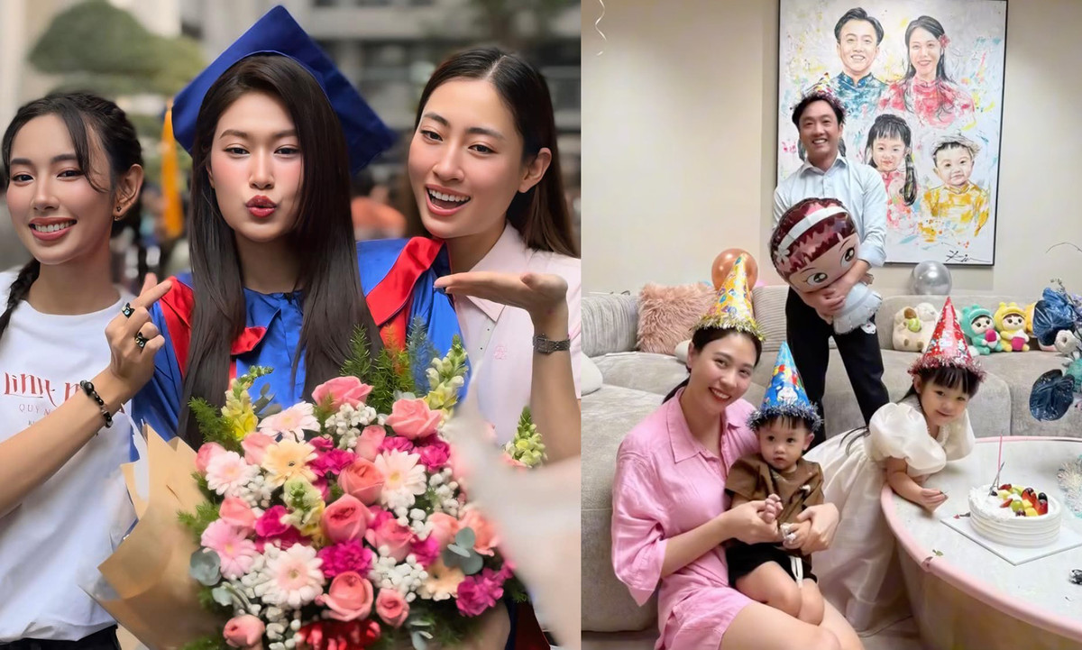 Hoa hậu Thiên Ân rạng rỡ trong buổi lễ tốt nghiệp tại Đại học Công nghiệp TP.HCM, ngành Quản trị khách sạn. Nàng hậu cũng được chọn đại diện cho tất cả các cử nhân gửi hoa tri ân đến các thầy cô trong buổi lễ. Trong ngày đặc biệt của đàn em, Hoa hậu Thùy Tiên và Lương Thùy Linh cũng có mặt chung vui.