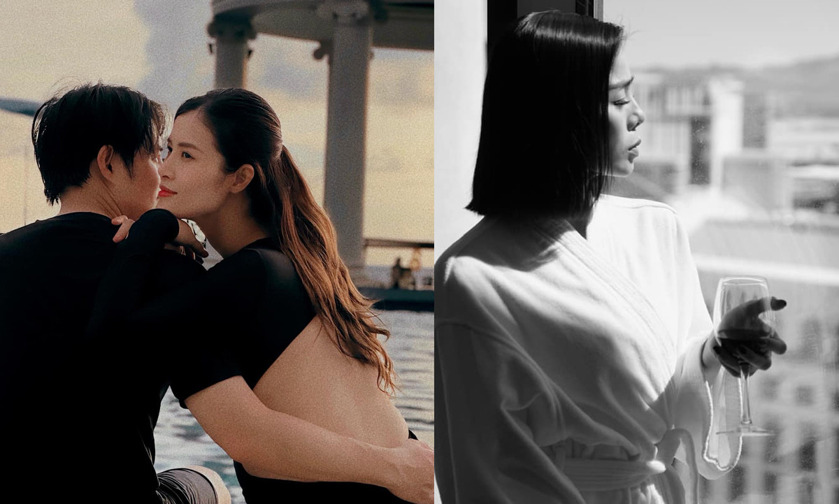 Vợ chồng Đông Nhi - Ông Cao Thắng tình tứ khi ngắm hoàng hôn ở biển Phú Quốc. Cặp đôi đang dành nhiều thời gian đi nghỉ dưỡng trước khi đón con thứ 2.