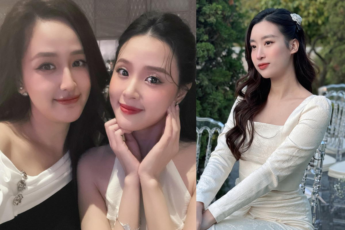 Hoa hậu Đỗ Mỹ Linh đẹp dịu dàng với váy trắng trong bữa tiệc. Nàng hậu được khen nhan sắc ngày càng thăng hạng sau khi sinh con đầu lòng.