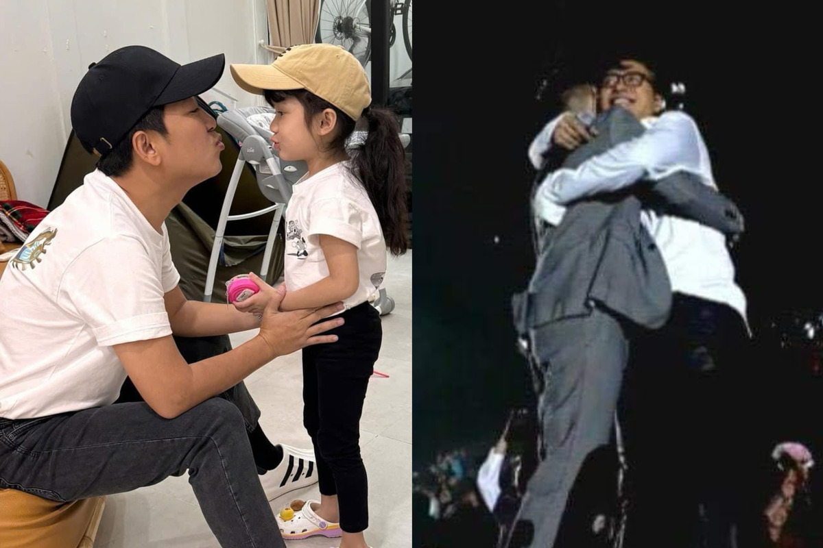 Duy Mạnh và Tuấn Hưng ôm nhau trong liveshow "Anh em kết đoàn" diễn ra tại Tam Đảo (Vĩnh Phúc). Chương trình nhằm gây quỹ ủng hộ đồng bào chịu thiệt hại sau cơn bão số 3.