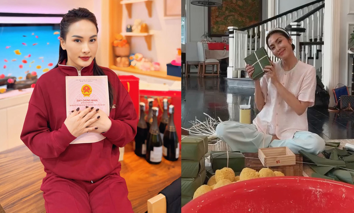Tăng Thanh Hà chia sẻ khoảnh khắc gói bánh chưng cùng gia đình trong căn biệt thự. Cô diện áo bà ba, cười tươi rói. Gói bánh chưng là hoạt động truyền thống của gia đình Tăng Thanh Hà vào mỗi dịp Tết.