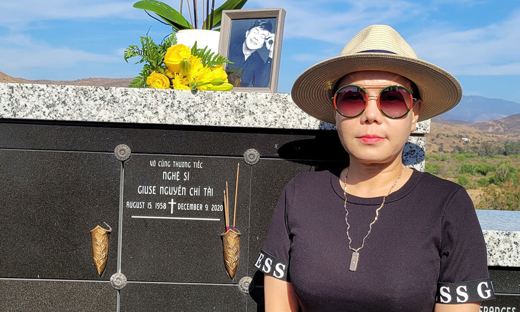 Nhân chuyến về Mỹ, vợ chồng Việt Hương dành thời gian tới thăm mộ của những người đồng nghiệp thân thiết như Ngọc Đáng, Phi Nhung, Chí Tài... Cô tâm sự: "Thăm NS Ngọc Đáng, mộ bia chưa xong, tụi con ngồi với cô 1 tý. Còn bà bạn (Phi Nhung - PV) thì được 1 vị trí đẹp tại chùa, ấp áp lắm, lần đầu tiên sau 10 tháng thấy lại hũ màu trắng mình ôm cả chặng đường nay an nhiên thanh thản ở chùa. Nay rất giỏi không khóc nè".