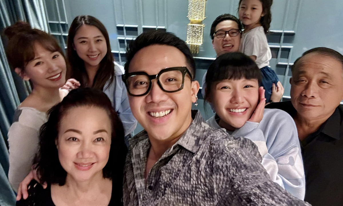 Trần Thành khoe bức ảnh đại gia đình gồm bố mẹ, vợ và 2 em gái. Anh dí dỏm tiết lộ đưa bố mẹ đi ăn để giảng hoà. "Ba mẹ mấy bạn có cãi nhau suốt như của mình không? May là vợ chồng tôi hầu như không cãi lộn bao giờ", anh viết.