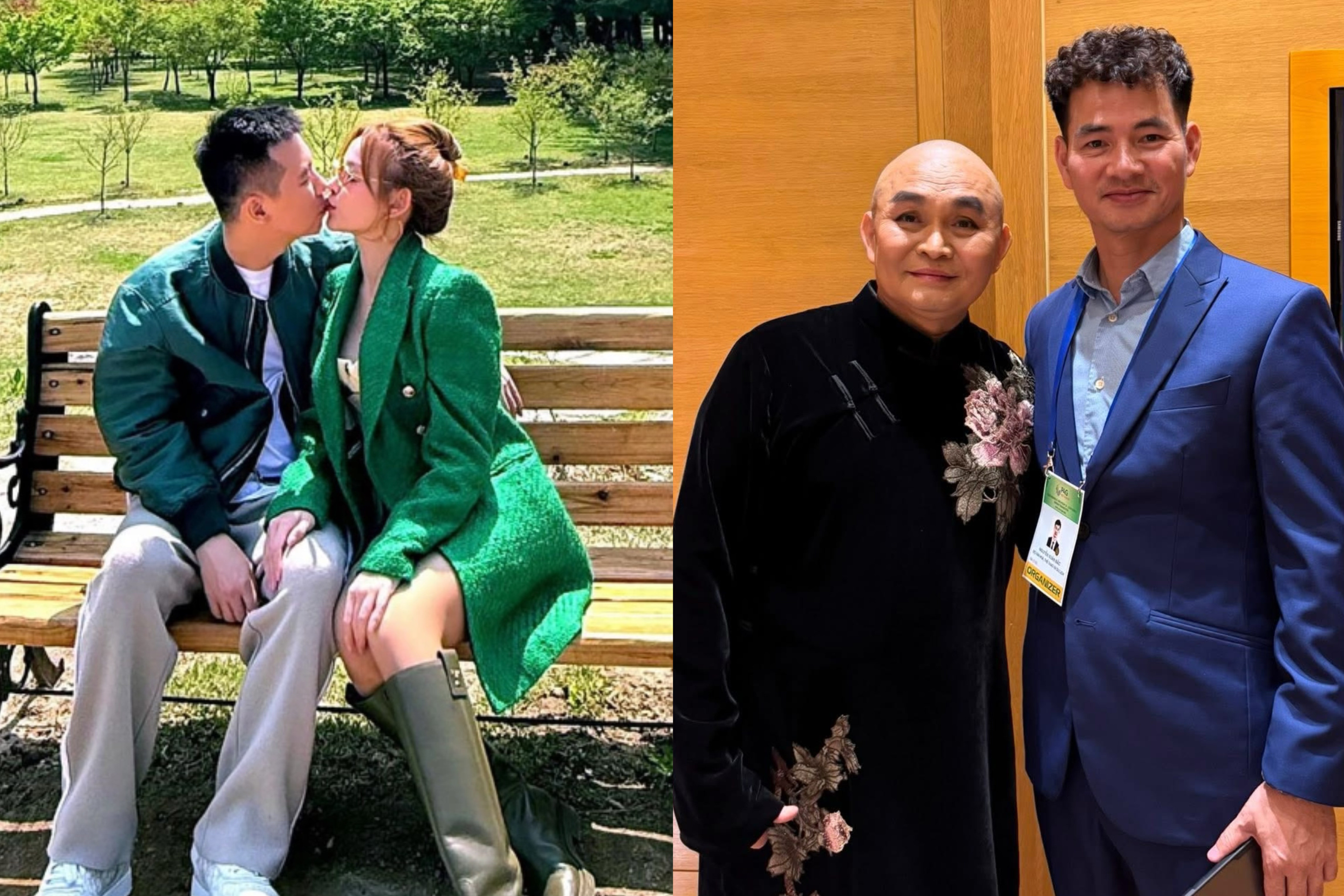 Giữa khung cảnh lãng mạn của đảo Nami, Huyền Baby và ông xã đã có khoảnh khắc "khóa môi" ngọt ngào. Bà mẹ hai con hóm hỉnh chia sẻ: "Lâu lâu cũng sến rện lắm, phải áo đôi mới chịu".
