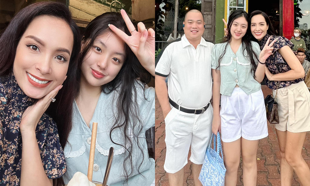 Suti - cô con gái của vợ chồng Thuý Hạnh - Minh Khang trổ mã xinh đẹp. Ở tuổi 15, cô bé ra dáng thiếu nữ, xinh đẹp lấn át khi chụp ảnh cùng mẹ Thuý Hạnh.