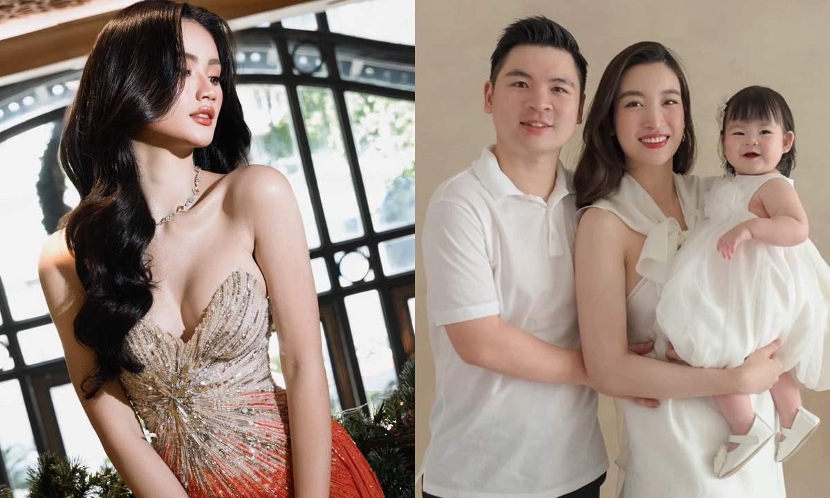 Hoa hậu Đỗ Mỹ Linh đăng ảnh ông xã - doanh nhân Đỗ Vinh Quang đang bế công chúa nhỏ ngắm cây thông Noel. Nàng hậu dí dỏm gọi hai bố con là "anh trai và em gái".