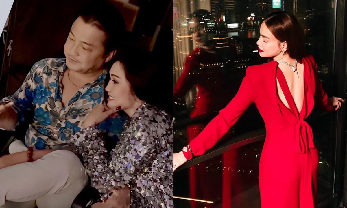Diễn viên Thuý Diễm diện đầm cắt xẻ khoe lưng trần. Nhan sắc bà xã Lương Thế Thành được khen ngày càng rực rỡ.