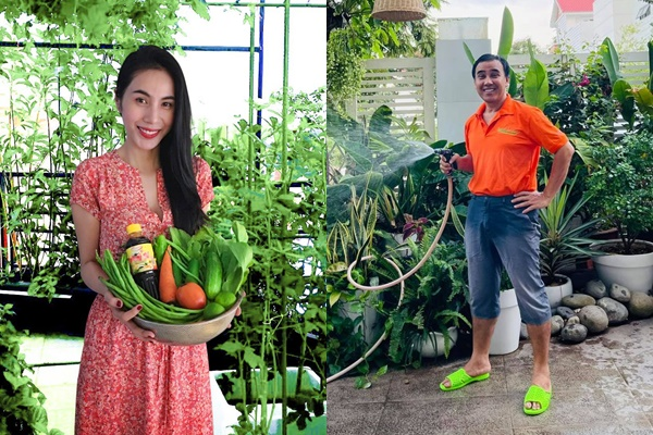 Là cặp vợ chồng nổi tiếng giàu có của showbiz Việt, Công Vinh - Thủy Tiên ở trong căn biệt thự rộng rãi được bao quanh bởi khu vườn trồng nhiều loại rau củ.