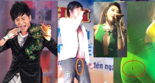Bạch Công Khanh với chiếc áo bị bén lửa, bại lộ việc hát nhép khi vừa hát vừa cởi áo.