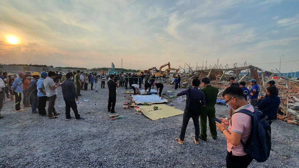 16h30: Lực lượng chức năng tỉnh Đồng Nai đang đến hiện trường vụ đổ sập bức tường tại huyện Trảng Bom khiến 10 người chết.
