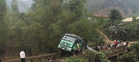 May mắn, chiếc cầu chỉ bị sập một phần nên chiếc xe tải vẫn không bị rơi xuống sông, tài xế thoát chết.