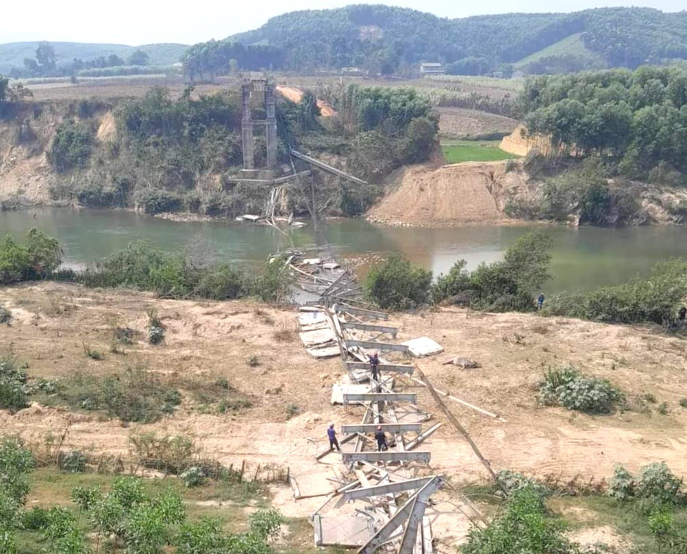 Cầu treo Kẻ Nính bị sập trong thời gian chờ sửa chữa.