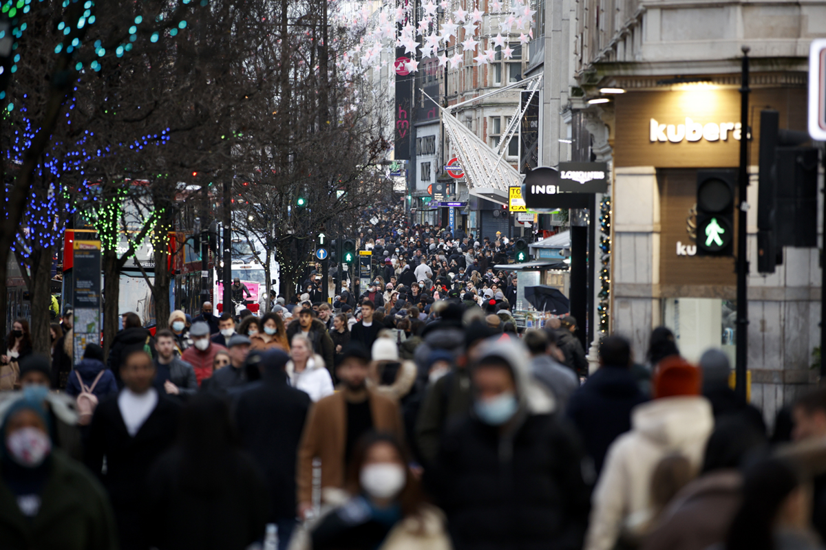 Đám đông mua sắm trên phố Oxford ở London vào hôm 27/12. (Ảnh: AP)