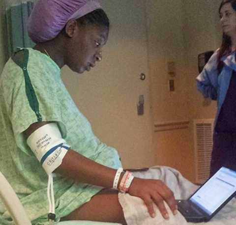 Đó là những dòng chú thích mà tài khoản có tên Shanell Brinkley-Chapman viết khi đăng bức ảnh của Tommitrise Collins, cô sinh viên 21 tuổi, đang ngồi trên giường bệnh viện với chiếc laptop trước mặt lên Facebook.
