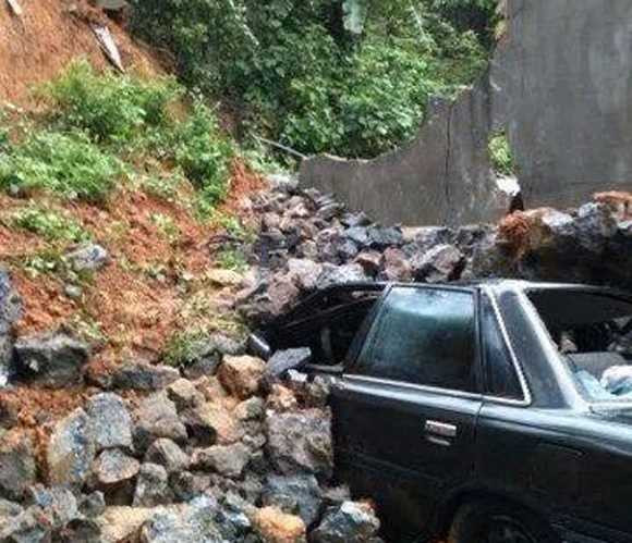 Trận mưa rất to đêm 7/6 có thể là nguyên nhân gây ra vụ sập tường kè đá hộc, đè lên nhà nạn nhân và khiến 2 bố con thiệt mạng.